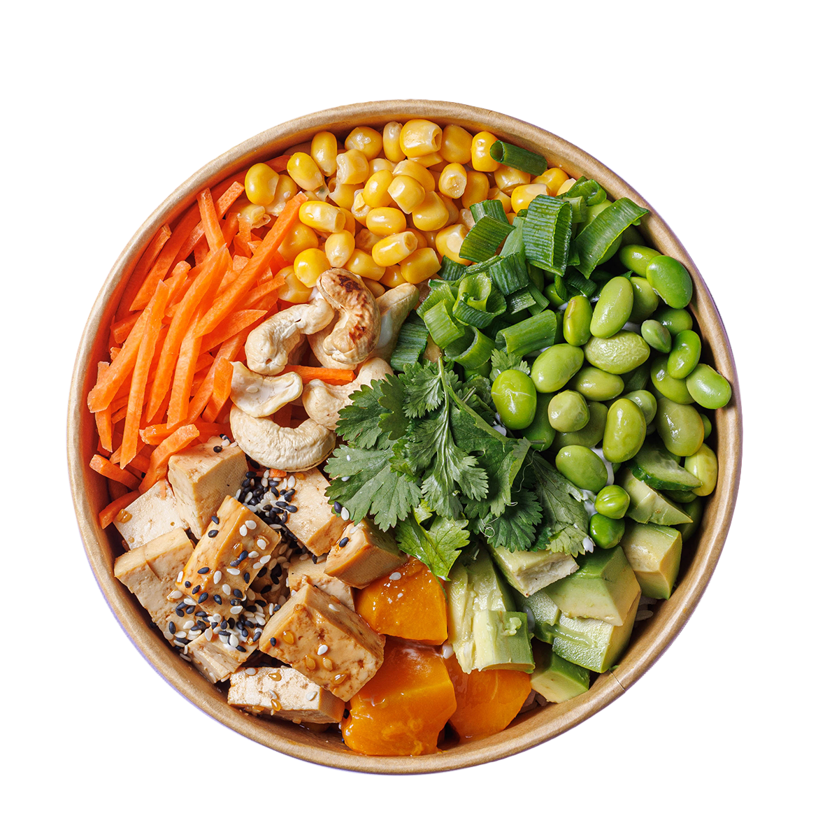 ירקות: אדממה, מנגו, בצל ירוק, אבוקדו, גזר ותירס
