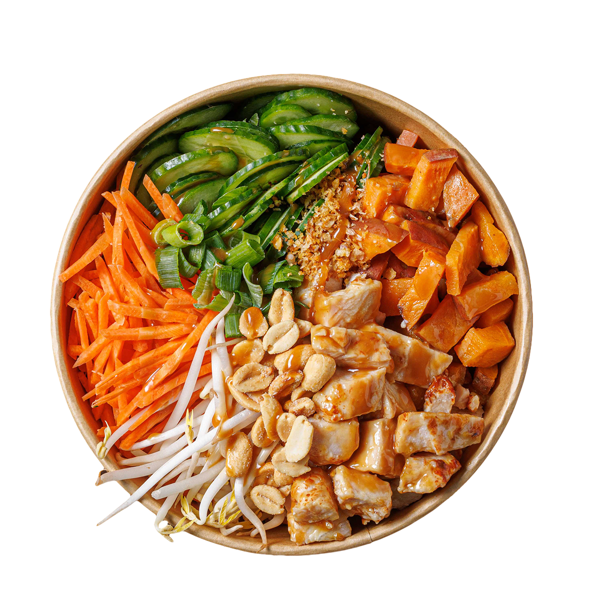 ירקות: גזר, נבטים, מלפפון, פלפל חריף, בטטה ובצל ירוק
