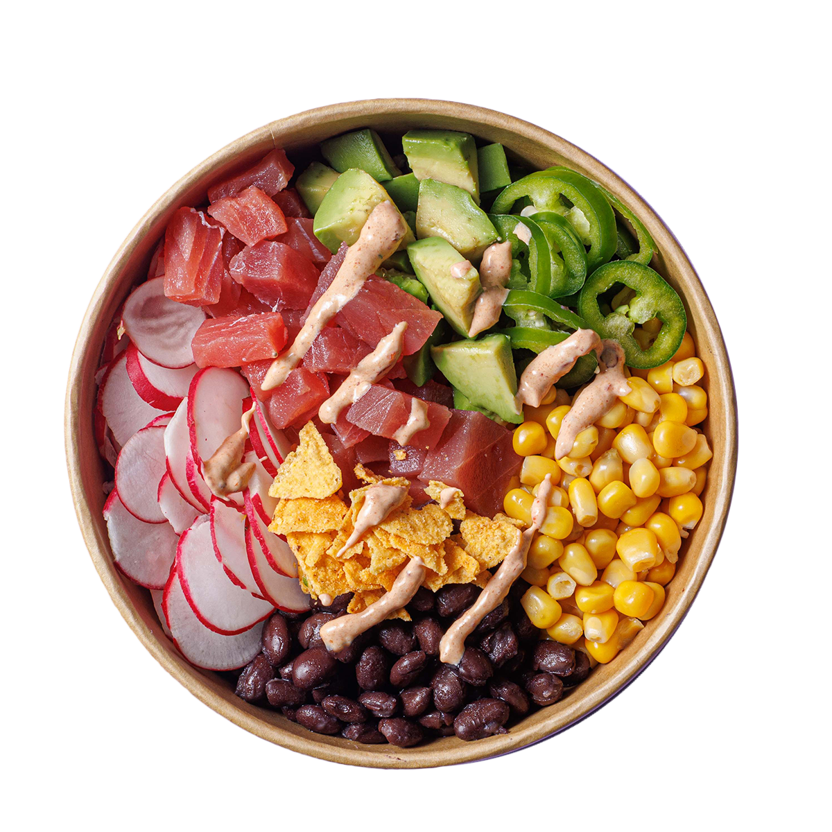 ירקות: שעועית שחורה, פלפל חריף, תירס, צנונית ואבוקדו